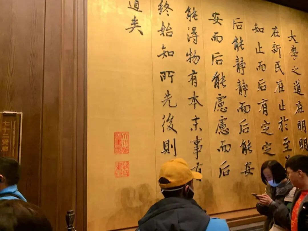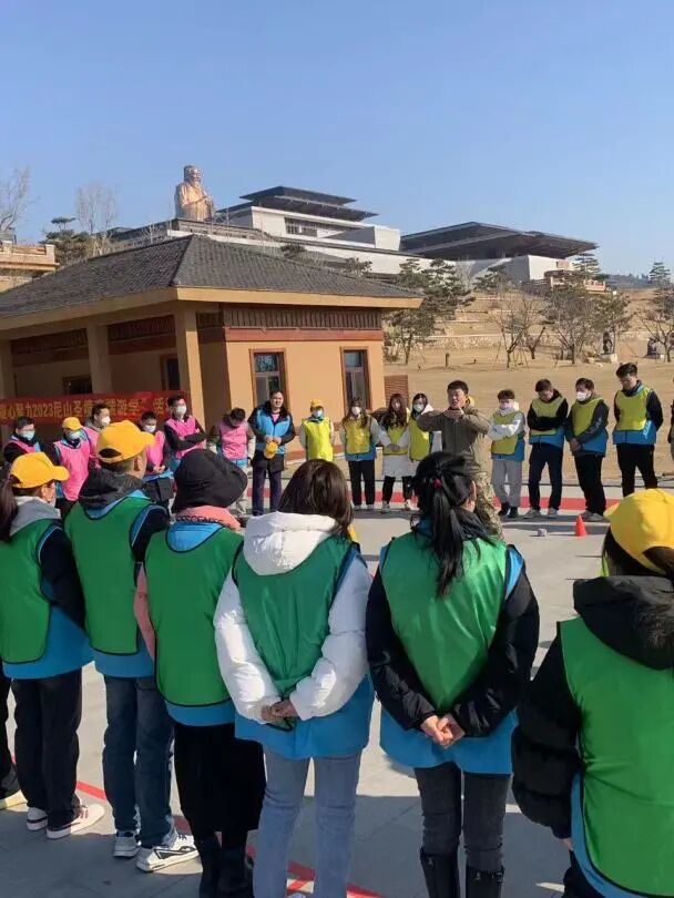 在山环水抱之中,孔子父亲生活过的鲁源村,孔子母亲的故里颜母村,孔子出生的夫子洞,形成了中国文化特有的圣山、圣水、圣地的圣境景观和圣父、圣母、圣人的圣境格局,1月30日,企叮咚伙伴们于尼山圣境景区内尼山宾舍早餐后便乘车前往尼山书屋孔子像侧广场,开启了第二天的游学拓展之旅!